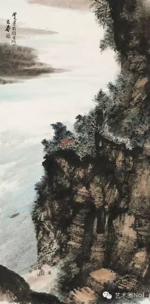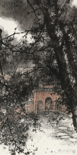 他擅画中景,在中国古典山水画里,中景是一个少有人涉猎的区域,而景春似乎情有独钟。在收录了他近二十余张画作的《四方墨迹》那本典藏书中和他近来的很多画上,几乎都是他画的中景。他为什么瞩意于中景?我倒以为也与他所说的融入相关。中景——这是一个最宜于展开情景的景别。它往往避开多余的呈现而直接进入叙述中心,它不昂扬亦不藏匿,极像一把中提琴,只依傍着生活的脉动。景春好像特别顺手,在布局的平衡和层次协调中既清晰又朦胧,却在整体上显露出一种熟稔的柔情,让它们承载起时间,承载起往日记忆,承载起儿女情长。于是,那道长廊的粉墙上,“桃花落,闲池阁,山盟虽在,锦书难托……”是不是有过放翁先生伤心怀抱放笔疾书的情伤。那壁摩岩,是不是暗藏着那年雷阵雨中狼狈地和她在大足宝顶山前一处只容得下两人的屋檐下躲雨的悸炫。“昔年种柳,依依汉南。今看摇落,凄怆江潭”,从来,好的画作不是表达了多少,而是能唤醒欣赏者多少。透过纸面,你或许会看出,景春的心底一定也沸腾着情感的波澜。
