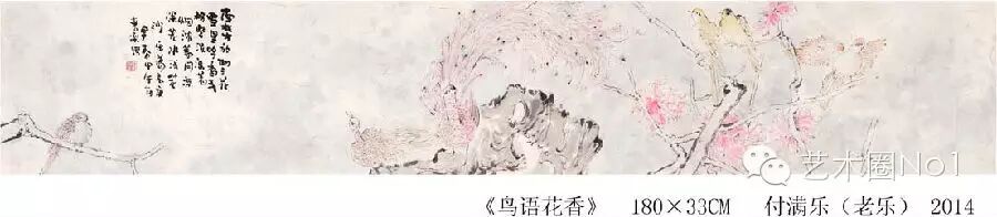 付满乐的花鸟,为我们带来很多启示,他受过良好的现代美术教育,严格的传统基础训练及不同领域绘画的广泛基础。后来他直接吸取宋人工笔花鸟画的传统,在技艺及审美取向上多有所得所悟所求,但他创作的花鸟意境却与传统境界拉开了距离。传统经验已成为他的一种文化资源。他创作的作品虽源于宋人花鸟绘画,但却貌合神离,在意味上甚至大相径庭。与古人的意趣相差甚远。现代人的种种心态境况在其作品中可寻到蛛丝马迹,看他运用传统手法绘制的作品,其境界显得如此的陌生且有熟悉,其审美与古人意趣及融合又分离。因此他得作品在当代花鸟绘画创作中,有独特的个人面貌与追求。虽然仍在探索,尚需进一步的调整完善,但其精神境界已日益彰显于作品。