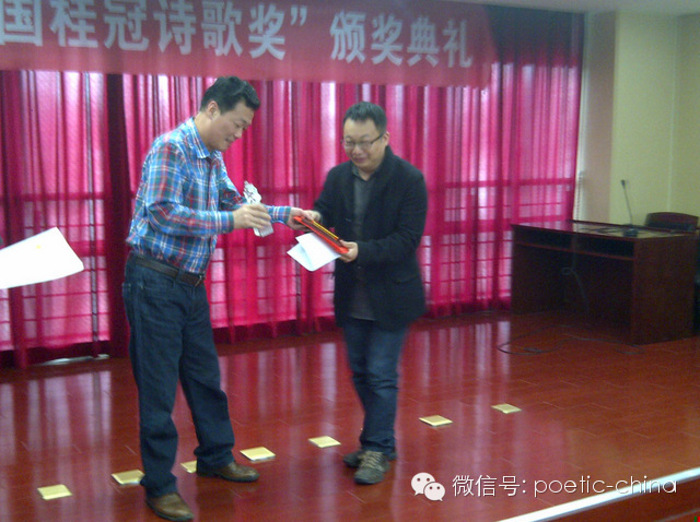 媒体人于其多向诗人候马颁发“中国桂冠诗集奖”