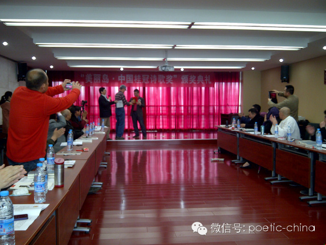 我要向诗人祁国先生、诗人何拜伦先生、诗人、诗评家唐欣先生领衔的评委会当面致谢——在此,请允许我说一声:“谢谢!”