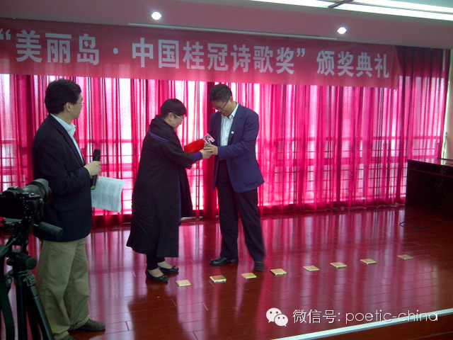 诗人郁郁向诗人徐江颁发“中国桂冠诗学奖”
