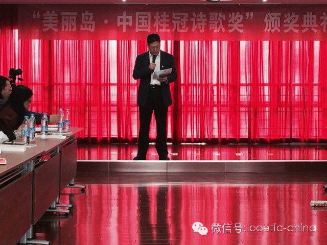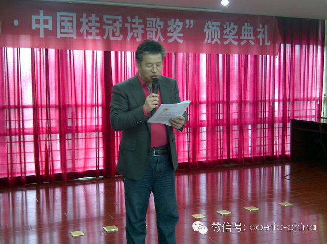 诗歌报网站站长小鱼儿代表评委会宣读 陈忠村颁奖辞
