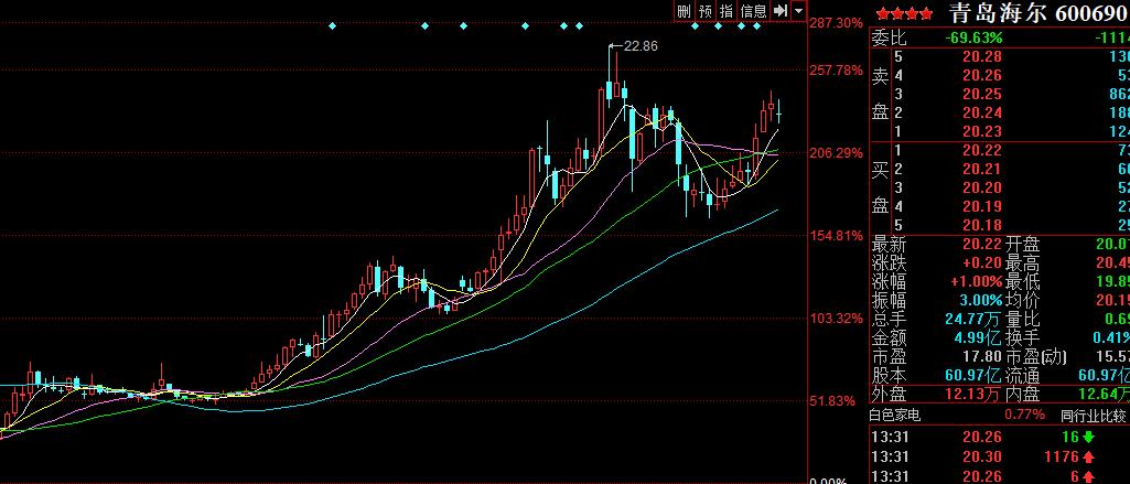 青岛海尔的股价是轻松越过上次5000多点行情时的高点,解放了所有套牢者并创出历史新高。而大多数股票的股价越依然在前次牛市行情高点下苦苦挣扎。