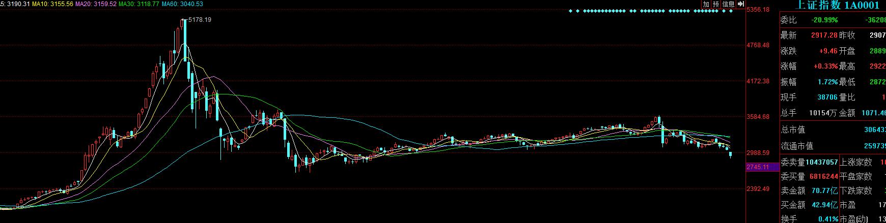 一般的股票在2900点时的K线形态都基本上是上证指数走势图的样子的。看同期的上证指数周线图