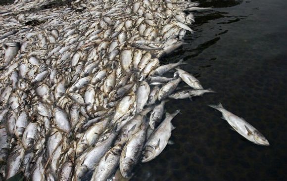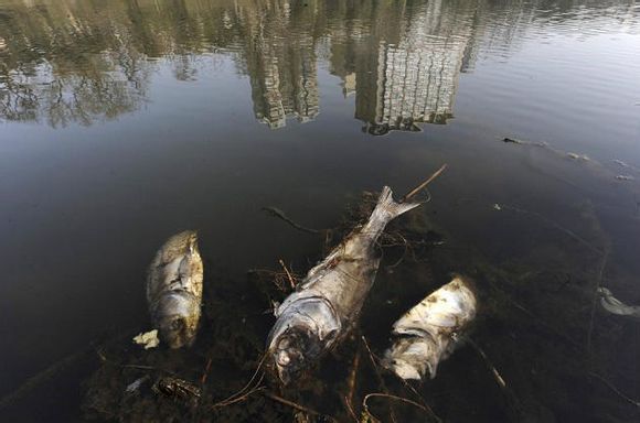 2010年7月,一家铜矿的污水泄漏,造成一条河流和水库污染,鱼群死亡。