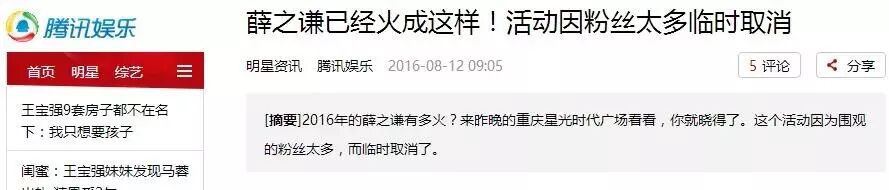 因敬业、专业和充满“薛之幽默”的综艺感带给他超高的曝光度,让他的红超出想象。8月11日原本在重庆参加某品牌发布会因粉丝人数过多被临时取消。这是继上次《跑男》因粉丝过多无法录制连夜换地后,内地又一起因人气爆棚被取消的演出,从效果上来看,薛之谦一人不输整个跑男团。