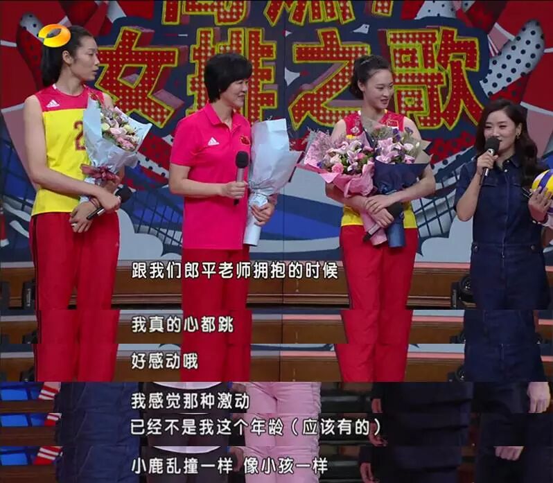 上周的《天天向上》请了女排的郎平、惠若琪和朱婷,还请了她们的粉丝代表邓紫棋和凤凰传奇。