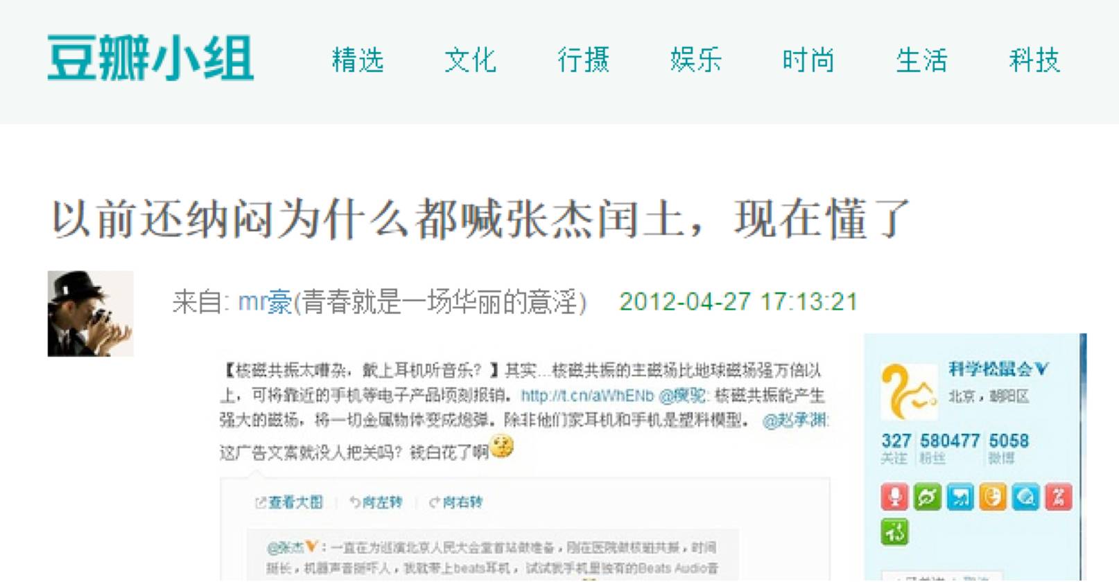 在豆瓣上你也可以找到很多关于讨论#张杰土#的话题