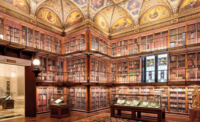 摩根图书馆与博物馆位于纽约麦迪逊大道上,是著名银行家约翰·皮尔庞特·摩根的儿子小摩根成立的图书馆。现时图书馆总馆的建筑落成于1906年,由查尔斯·麦金设计,本是大摩根的私人图书馆;大摩根趋势后,小摩根于1924年将图书馆开放成为摩根图书馆与博物馆的雏型;1966年,图书馆被评为美国国家历史名胜,小摩根后来又分别于1928年及1988年扩建两座建筑物,1991年,一条通道兴建了两三座建筑物物贯通。2006年,著名建筑师伦佐·皮亚诺协助翻新整个建筑群,成就了今日的外观。