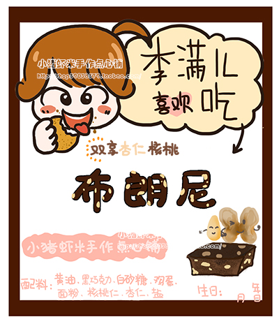这是标签,今天做出来的话,就可以贴在包装上发给大家了。布朗尼的链接在下面小图后。