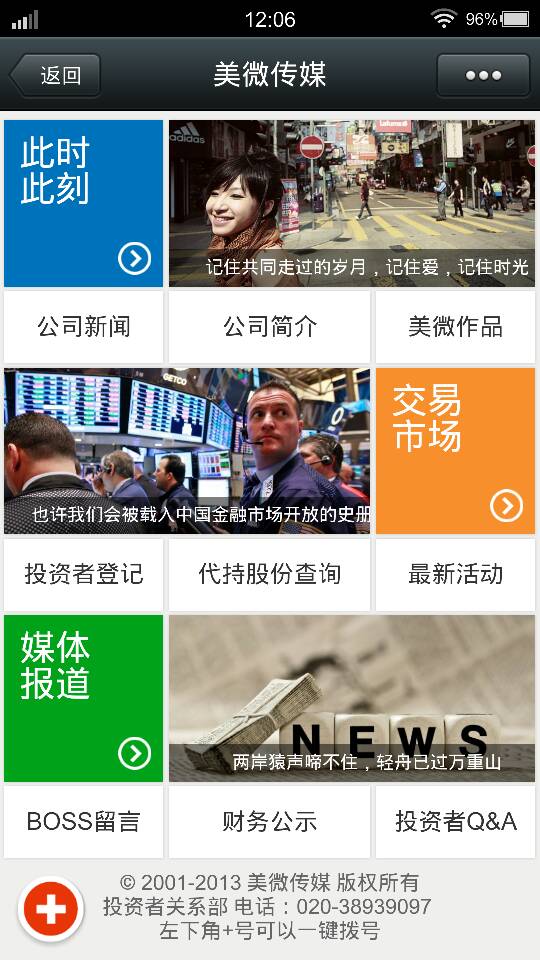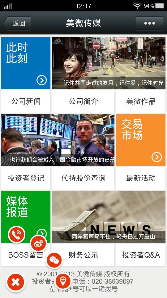 在完成注册后,一般需要48小时,美微传媒投资者关系部的同事会在后台将资料更新。如果出现数字偏差,请按左下方的+键,调出一键拨号,即可接通投资者关系部。目前该部门设在广州天河区保利中辰大厦。
