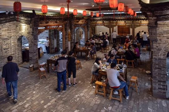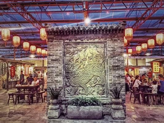 青砖黛瓦,门楼影壁,高炉土灶,曲艺乡音,仿佛时光倒转,梦回故土,尽享文化大餐。每逢节假期,建业大食堂客流满座,每天接待游客达7000余人。