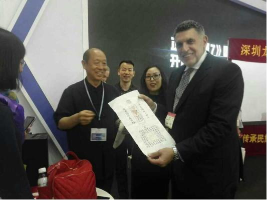 张胜吾向美国好莱坞著名导演AIastair介绍中国传统文化