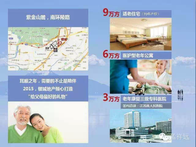 三是银城有啥?银城是从鼓楼区走出的成功开发企业,近20年积累了数万业主,丰富的老客户资源为银城开发提供了很好的保证,品牌追随者的支持是房企开拓新市场的信心所在。此次介入养老产业,将会在横向上进一步扩大银城的业主规模,在纵向上也会丰富其对业主的产品与服务,实现全生命周期产业链条,应该说这也会是银城做百年企业的战略选择。银城品质、物业都有较好的口碑,养老产业需要更专业的医疗配套和服务,这也对银城提出了更高要求。