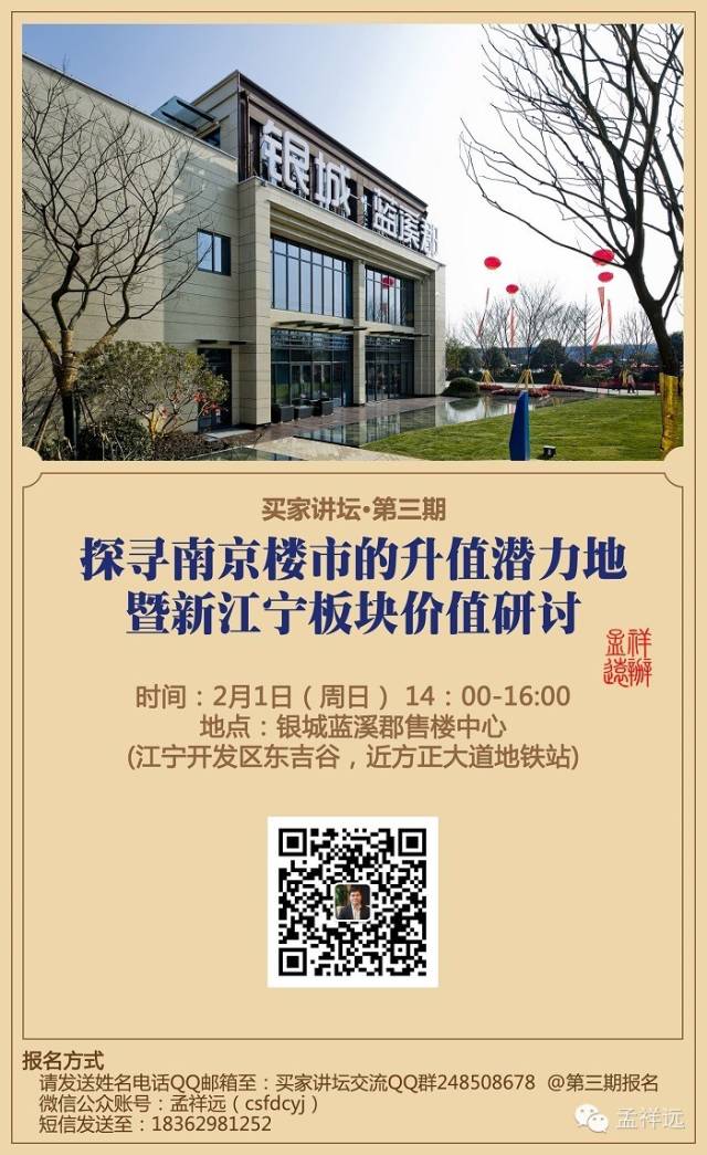 讲座主题:探寻南京楼市升值潜力地暨江宁新板块价值研讨会