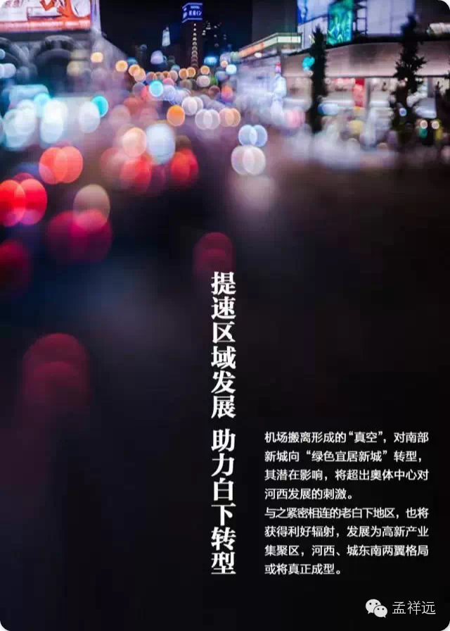主页君@孟祥远 认为:10平方公里的大校场机场作为南京主城最后一块宝地,作为未来的“城市客厅”其开发价值极高,也是南京大城东南的核心所在。与南京南站片区一道,将会成为南京主城联系江宁,城东联系河西的枢纽所在。机场搬迁,对老白下的君望墅以及卡子门的复地宴南都、保利堂悦等项目是重大利好,还将促进麒麟科技园与主城的充分衔接。而机场搬迁后,大城东南全面解放,机场片区及东部的麒麟新城、南部的江宁、西部的南京南站都是较大受益者。