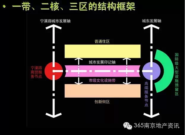 “三区”:南部的创意街区、北部的一般居住区、东部的未来发展区。