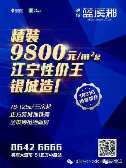 银城蓝溪郡抢搭1月末班车于本周六推新,又将给楼市带来什么?期待值几何?买家讲坛第三期“探寻南京楼市升值潜力暨江宁新板块价值研讨会”走进正方新城,于本周日(2月1日)下午2点在银城蓝溪郡,与大家一起分享未来各板块升值空间。报名请加QQ群248508678找@ 第三期报名