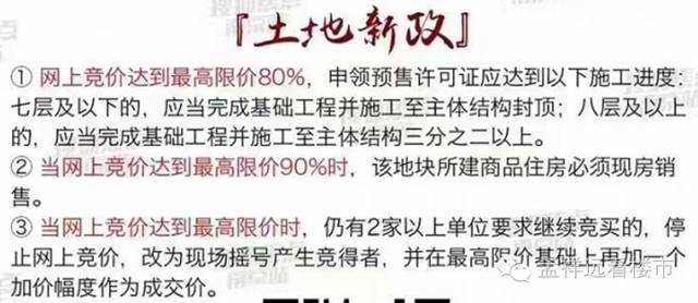 当网上竞价达到最高限价80%时,地块所建商品房须完成基础工程及相应量主体结构才能申领预售许可。