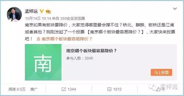 南京楼市经历了这一波最严调控,市场已明显转向,从以前激进“买买买”趋近稳健买入。当然房子能“涨多少”依然是大家关注的,但市场调控期更值得关注的是房子“抗跌性”。根据前几天微博网友的投票,发现主城区的城南、城中、城北、河西成为房价最抗跌板块主城板块。