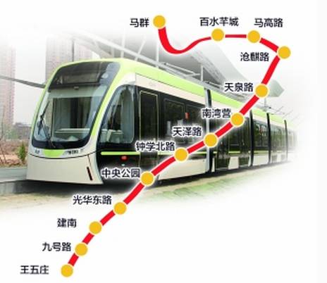 麒麟有轨电车起点自2号线马群站,途经百水芊城社区、南湾营、麒麟商务区、中央公园以及王五庄等区域。伴随有轨电车正式的即将通车,沿线楼盘和小区都将获益。