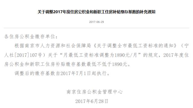 通知称,此次调整的对象是2017年6月30日前在南京住房公积金管理中心办理缴存登记的单位及其职工。