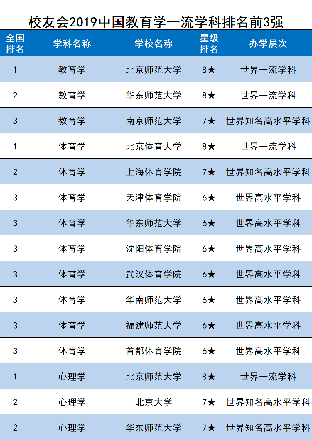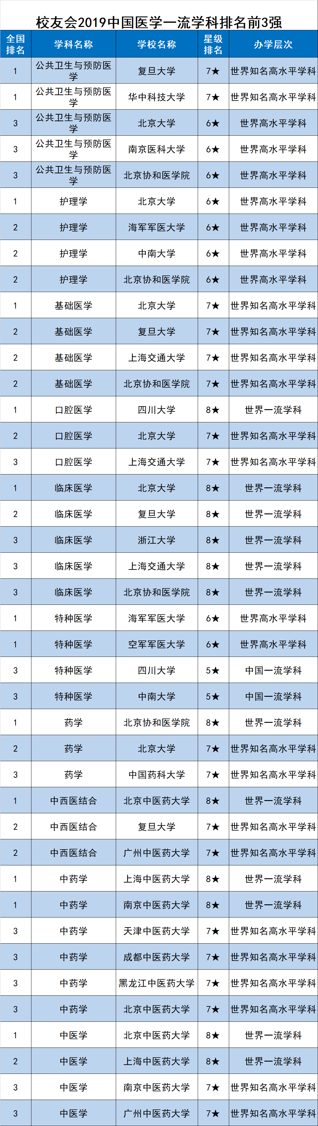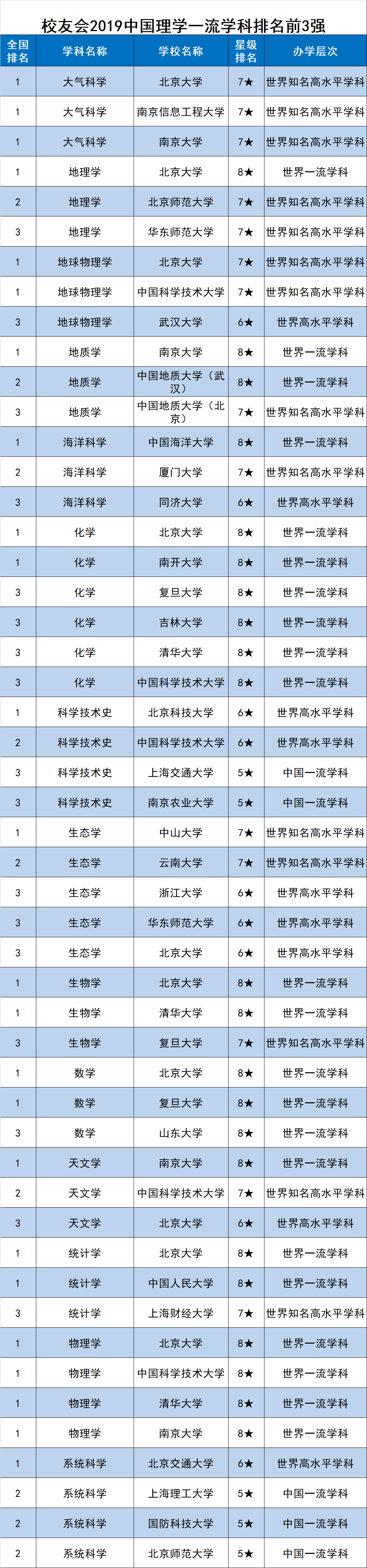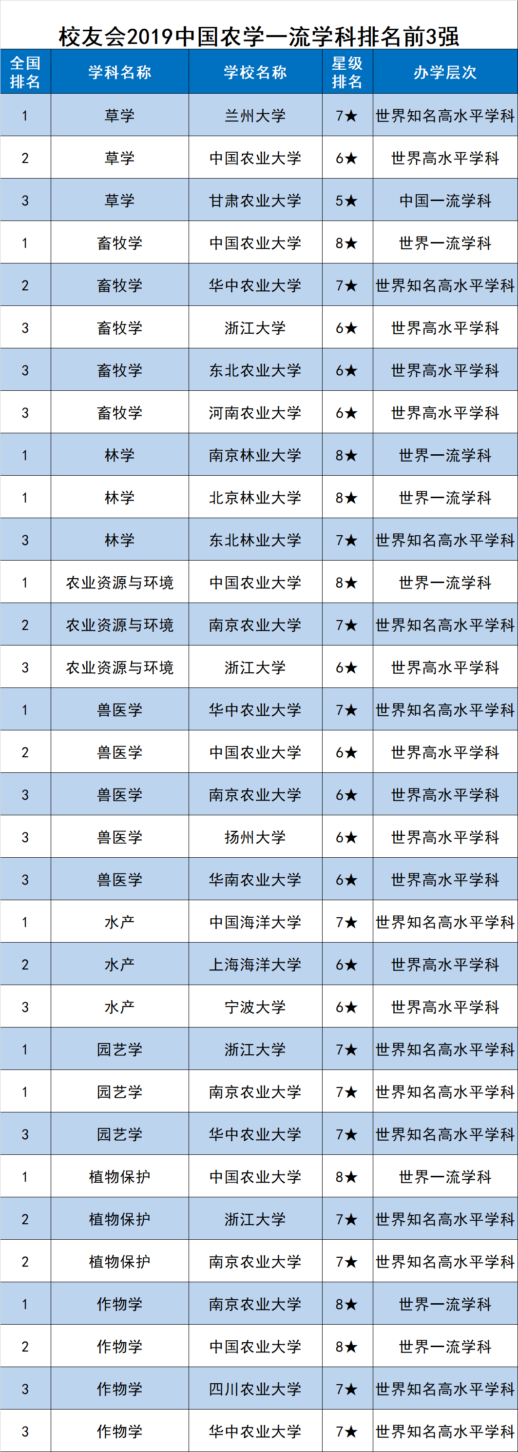 下面是校友会2019中国一流学科排名12大学科门类各一级学科前3强名单。
