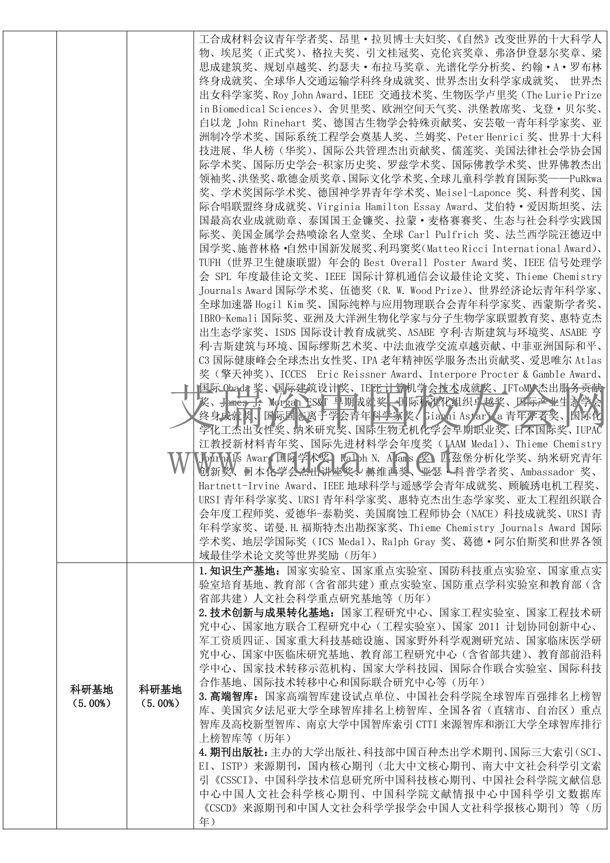 (3)增设教育部第四轮学科评估学科优秀率指标,新增墨子量子奖、地层学国际奖(ICS Medal)、Ralph Gray奖、葛德·阿尔伯斯奖和国际各领域最佳学术论文奖等近百项国际科研奖励指标,删除计划单列市科学技术奖励、哲学社会科学优秀成果奖和高等教育教学成果奖等指标。
