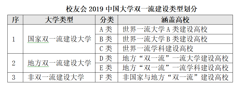 校友会中国大学“双一流”建设类型