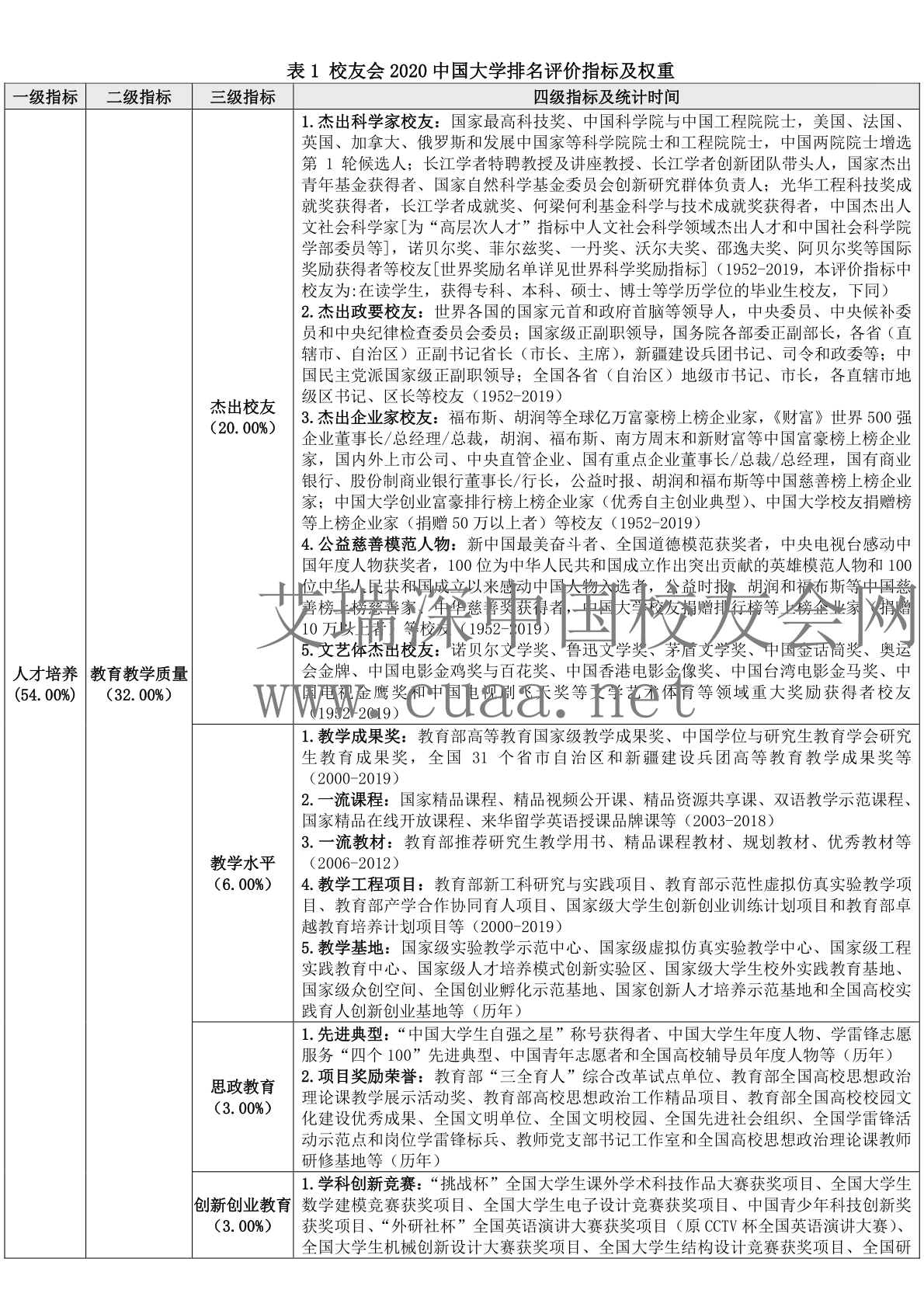 艾瑞深中国校友会网2020中国大学排名评价指标体系下载: