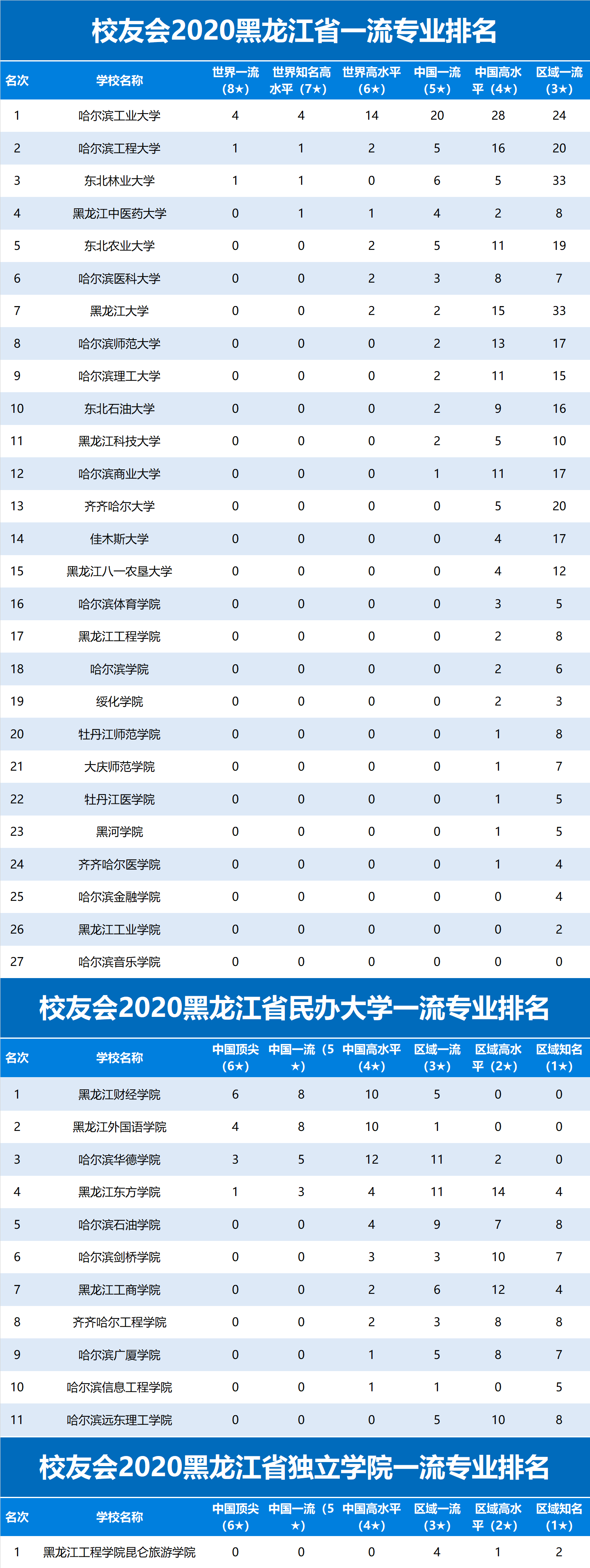 校友会2020黑龙江省一流专业排名,哈尔滨工大第1,东北林大第3