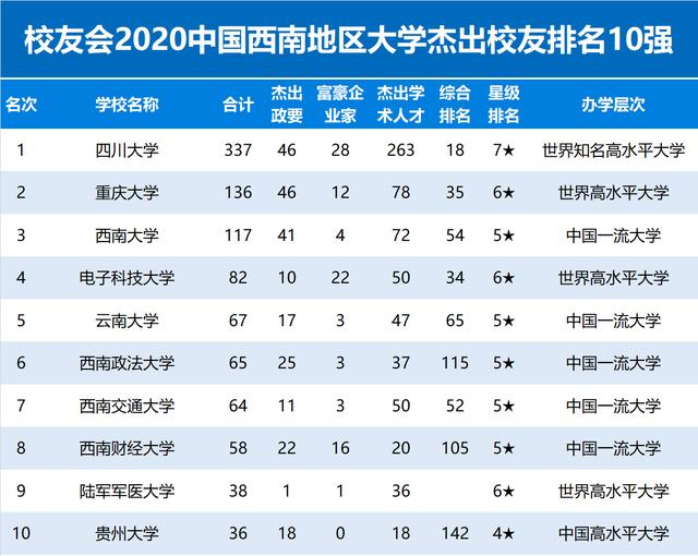 2020年全国各地区高考成绩已陆续公布,中国哪些西南地区高校的教育教学质量最高?哪些西南地区大学的人才培养水平最高、政商学界校友最为杰出?哪些西南地区大学是2020年中国高考优秀考生的首选?