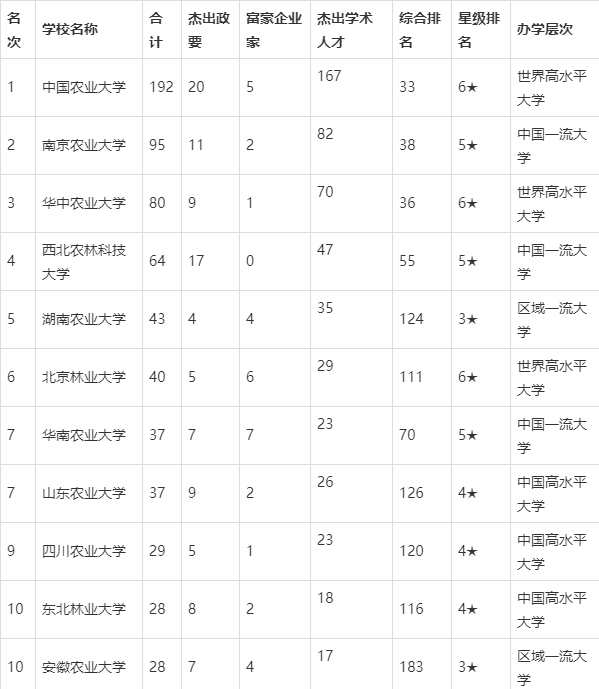 中国哪些农林类高校的教育教学质量最高?哪些农林类大学的人才培养水平最高、政商学界校友最为杰出?