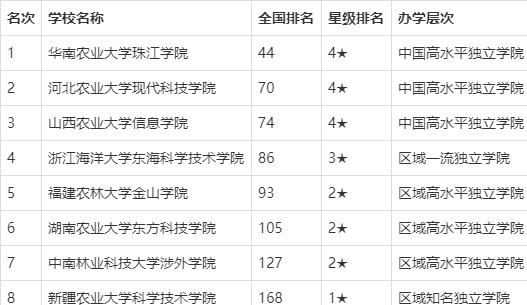 中国农业大学、华南农业大学珠江学院雄居校友会2020中国农林类大学教学质量排名和2020中国农林类独立学院教学质量排名冠军。
