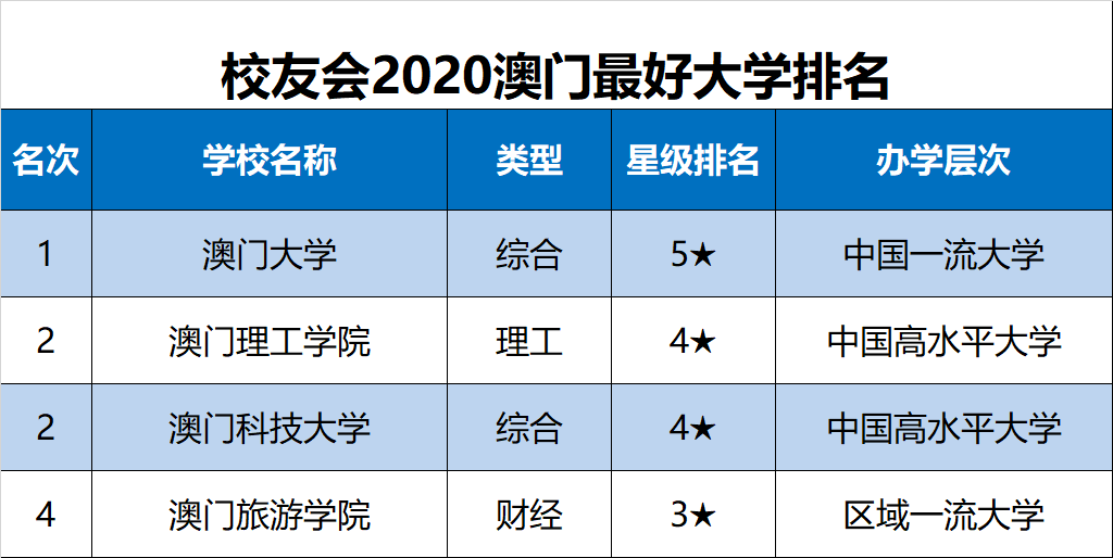 澳门大学荣膺2020年中国五星级大学(5),跻身2020年世界知名大学、中国一流大学行列,雄居校友会2020年澳门最好大学排名榜首。