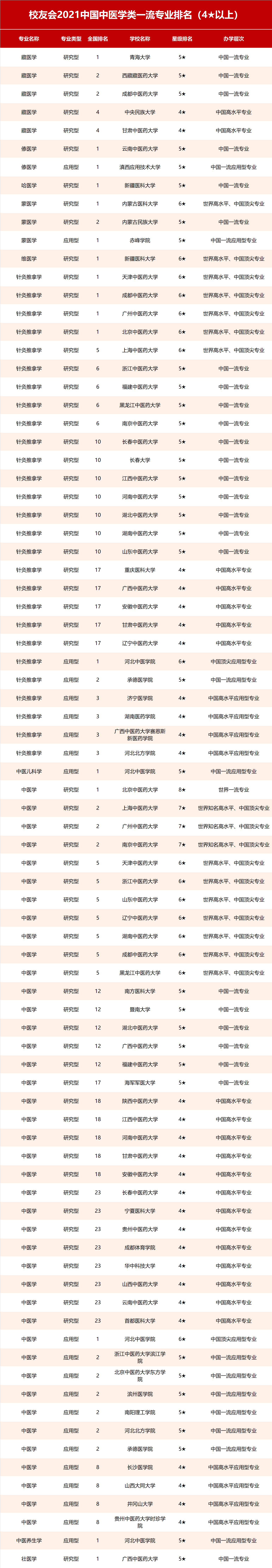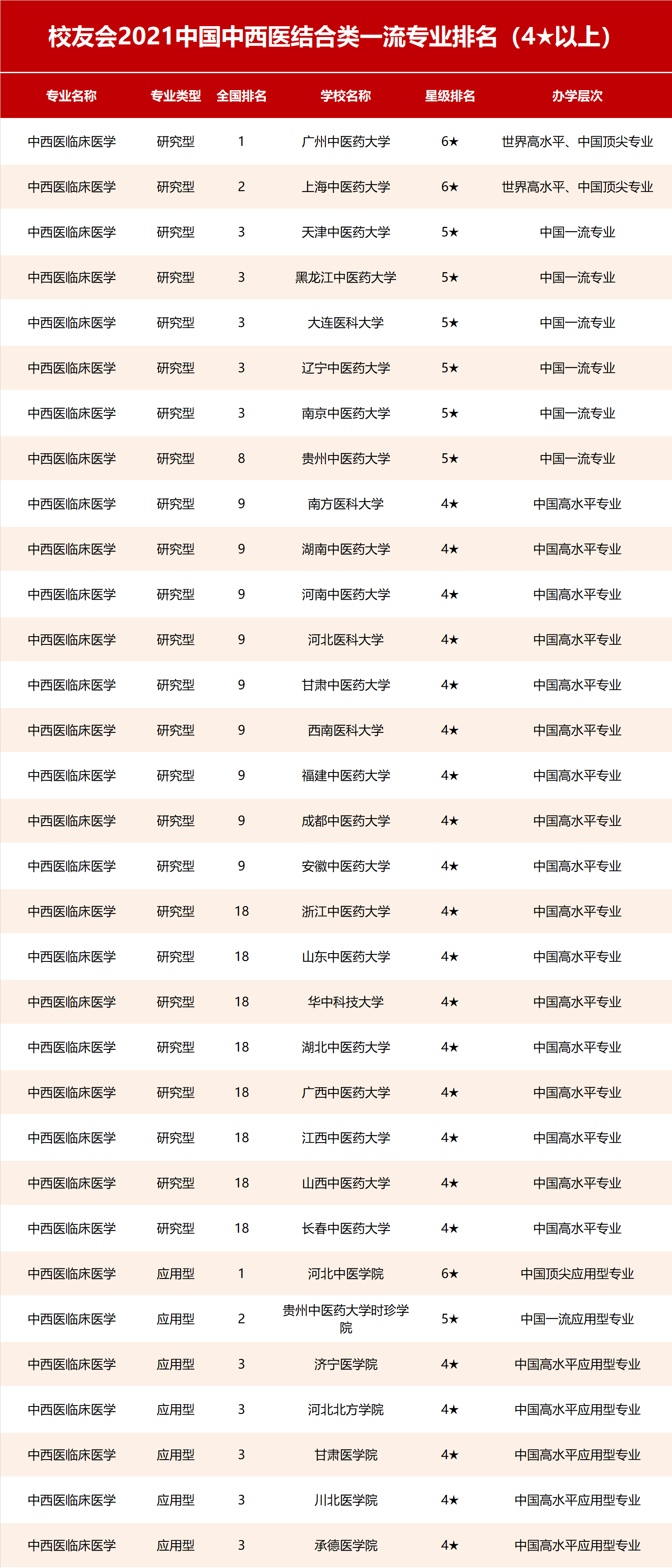 报告公布最新校友会2021中国中医药大学排名、2021中国民办中医药大学排名、2021中国中西医结合类一流专业排名、2021中国中药学类一流专业排名、2021中国中医学类一流专业排名,报告已由科学出版社出版发行。