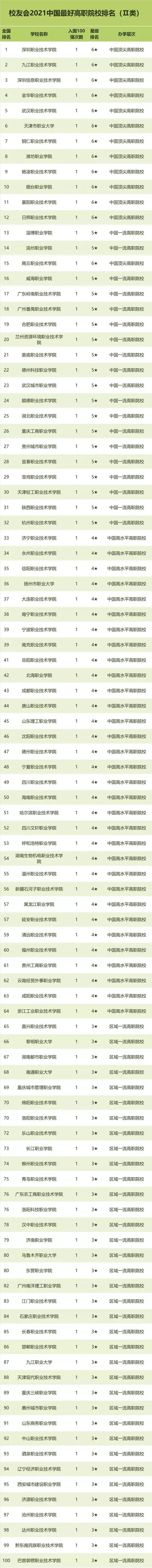 广东轻工职业技术学院、深圳职业技术学院等雄居2021中国最好高职院校排名第一