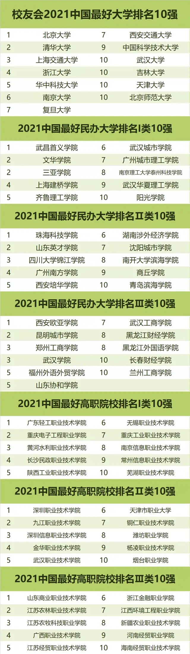 重磅:校友会2021中国最好大学排名发布,武汉大学等7校稳居中国大学第一方阵