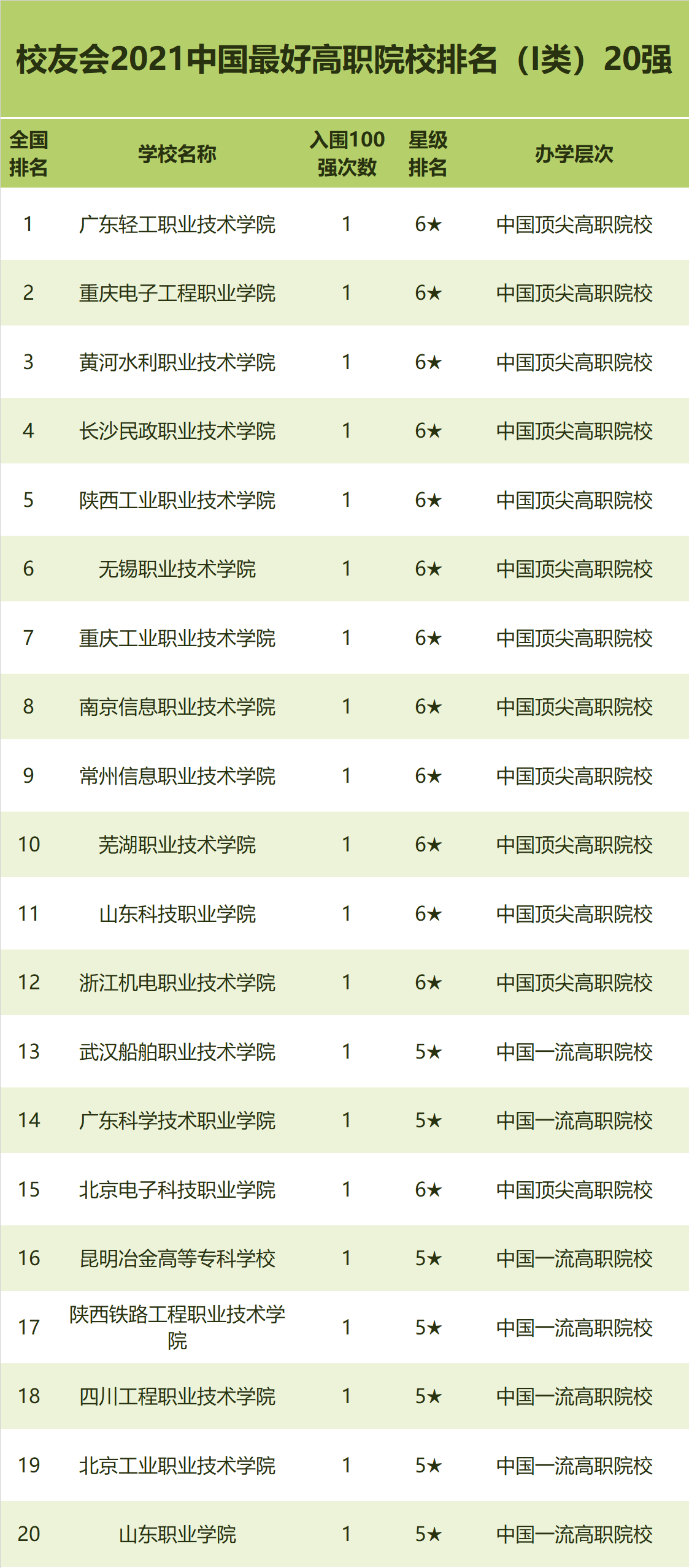校友会2021中国最好高职院校排名出炉,广东轻工职业技术学院等雄居第一