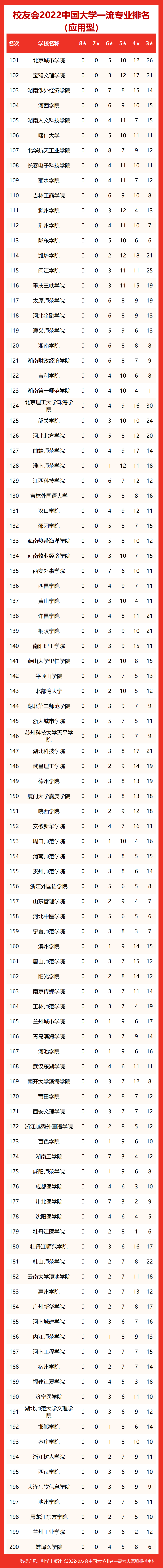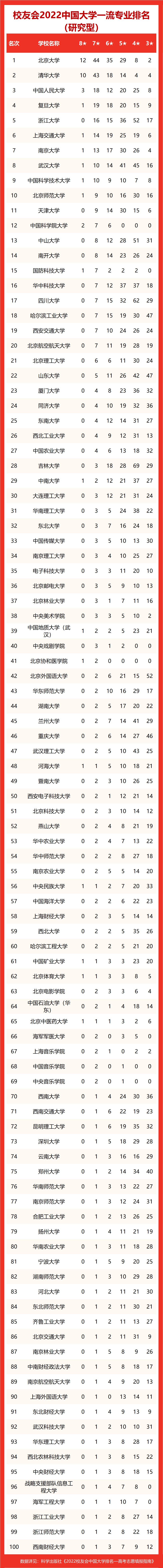 校友会2022中国大学一流专业排名依据中国大学的星级专业数(按七八星、五六星、三四星和一二星分组),采用奥运会奖牌榜的排序方法进行排序。