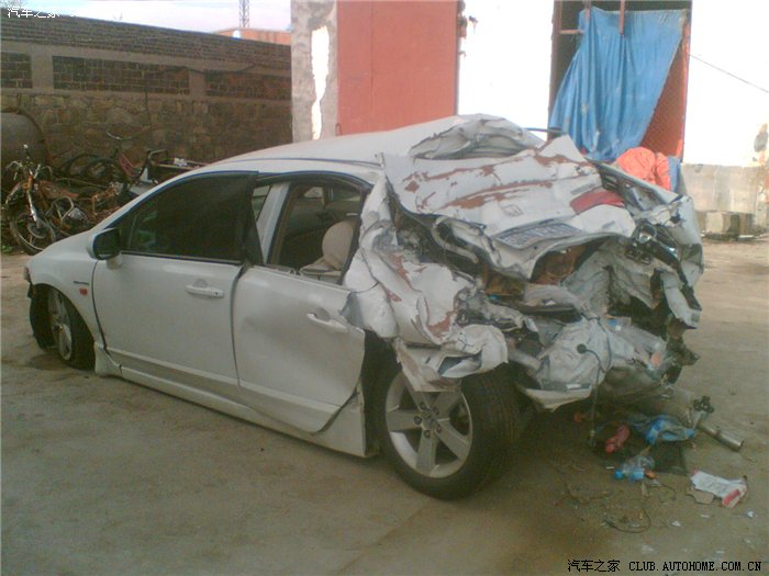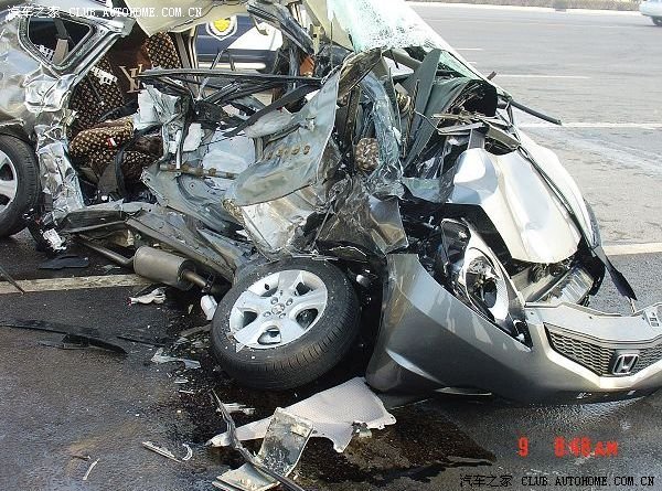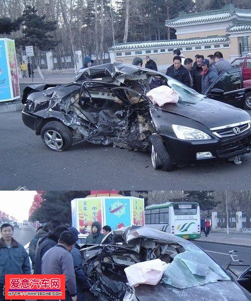 广本车祸 :(被后面车追尾, 整个后排消失!三厢变两厢!后座位没了! )