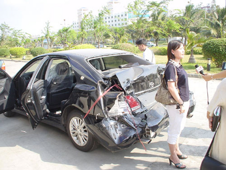丰田凯美瑞:(2006年9月2日,一个驾驶刚刚购买的丰田凯美瑞,在一条乡间公路上,与一辆迎面驶过的农用运输车相撞。凯美瑞的前部严重毁损,由于安全气囊爆裂,驾驶员未系安全带,导致驾驶员当场死亡,副驾驶员重伤。)