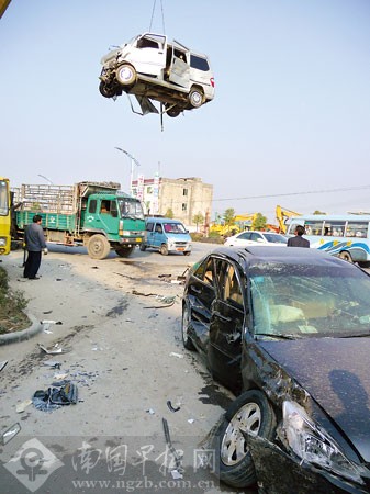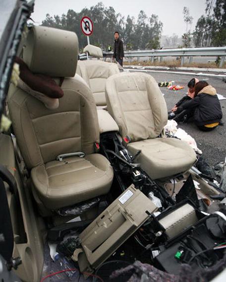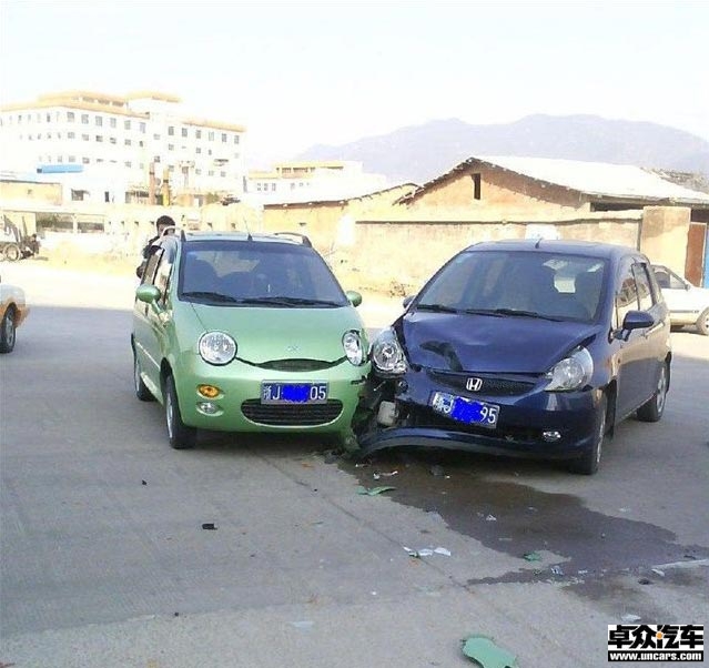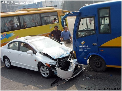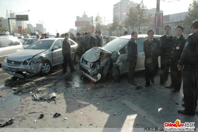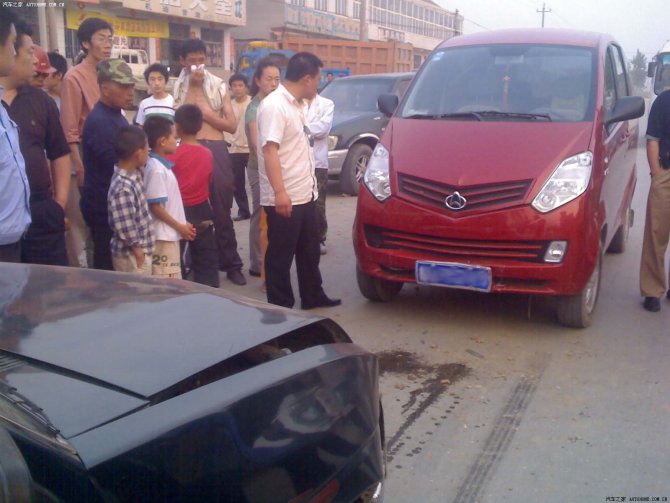 别克和日产:(07年在郑州,“吸能”的日本车把发动机吸收进了驾驶舱。)