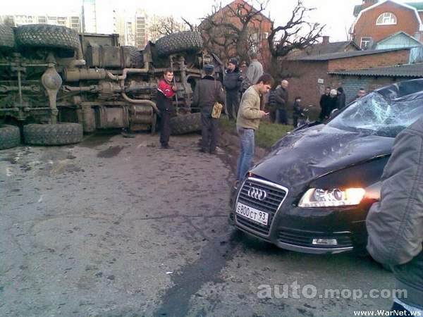 奇瑞A3:(大货车撞到驾驶位附近,推行小车十几米再给小货车夹住,假如不是A3的A、B柱够粗大乘员舱整体结构结实,只是第一次碰撞就玩完了。随后的碰撞小货车又撞倒多个电线杆,可以想象其实后一次的碰撞,惯性、力量依然非常大,万幸的是车主伤的不算严重。几分钟后,能爬到副驾驶座位上。)
