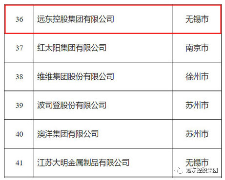 据悉,100强榜单是根据江苏省上规模民营企业调研,最终以2018年度营业收入为依据确定的,这是江苏省工商联首次对外发布江苏民营企业暨制造业100强。本次江苏民营企业100强入围门槛161.99亿元,民营企业制造业100强入围门槛57.73亿元。远东控股集团有限公司以良好的营收情况登上双榜单,再次展现了公司实力。