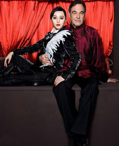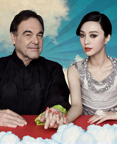 两度夺得奥斯卡最佳导演奖的美国大导演奥利弗·斯通(Oliver Stone)与中国内地女演员范冰冰近日携手登上了《iLOOK世界都市》杂志2月刊的封面,这是中国女演员首度与好莱坞殿堂级的导演“亲密接触”。范冰冰极具东方表现力面孔与奥利弗·斯通同时出现在画面中,这样奇妙的组合已经把该期的主题“世界是平的”表达的非常透彻。
