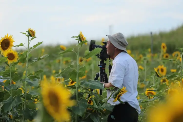 纵横交错的田埂的小路,你可以随意地穿梭于花田之间,闻着金色花海的清香,望着齐人高朝阳而开的向日葵,此时你随手举起相机就可以拍出美丽的图片。更有甚者,一些深圳摄影爱好者还架起了相机支架,安上单反,在花田里开得最鲜艳的向日葵前咔嚓咔嚓,为节日增添不少情趣。