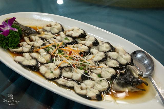 据说这道菜是酒店得过大奖的,看着覆盖着层层厚厚的辣椒,好像很辣的样子,其实只有微微辣,非常符合江南人的口味。鱼头王的头是真的大,肉质十分的细腻。只是这名字,“臭头鱼”?应该跟剁椒鱼头差不多吧。