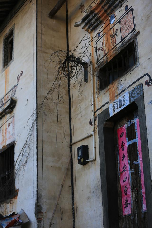 土褐色的瓦房延伸开去,深青色的青苔静静地躺在屋角,可爱的爬山虎把它的足迹填满了整个小屋。这家主人见了我,露出憨厚的笑容。