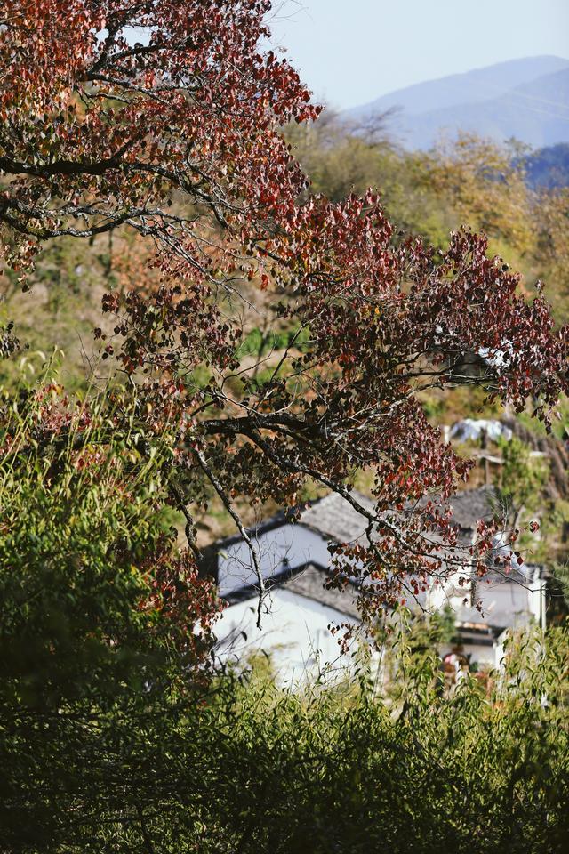 车子在山路上蜿蜒着,路越来越窄,转了个弯,一眼望去,嚯,太震撼了,漫山的柿子树。只是行车途中不方便拍,然而后来我发现再也没找到更好的机位,只留下了记忆中的惊鸿一瞥。